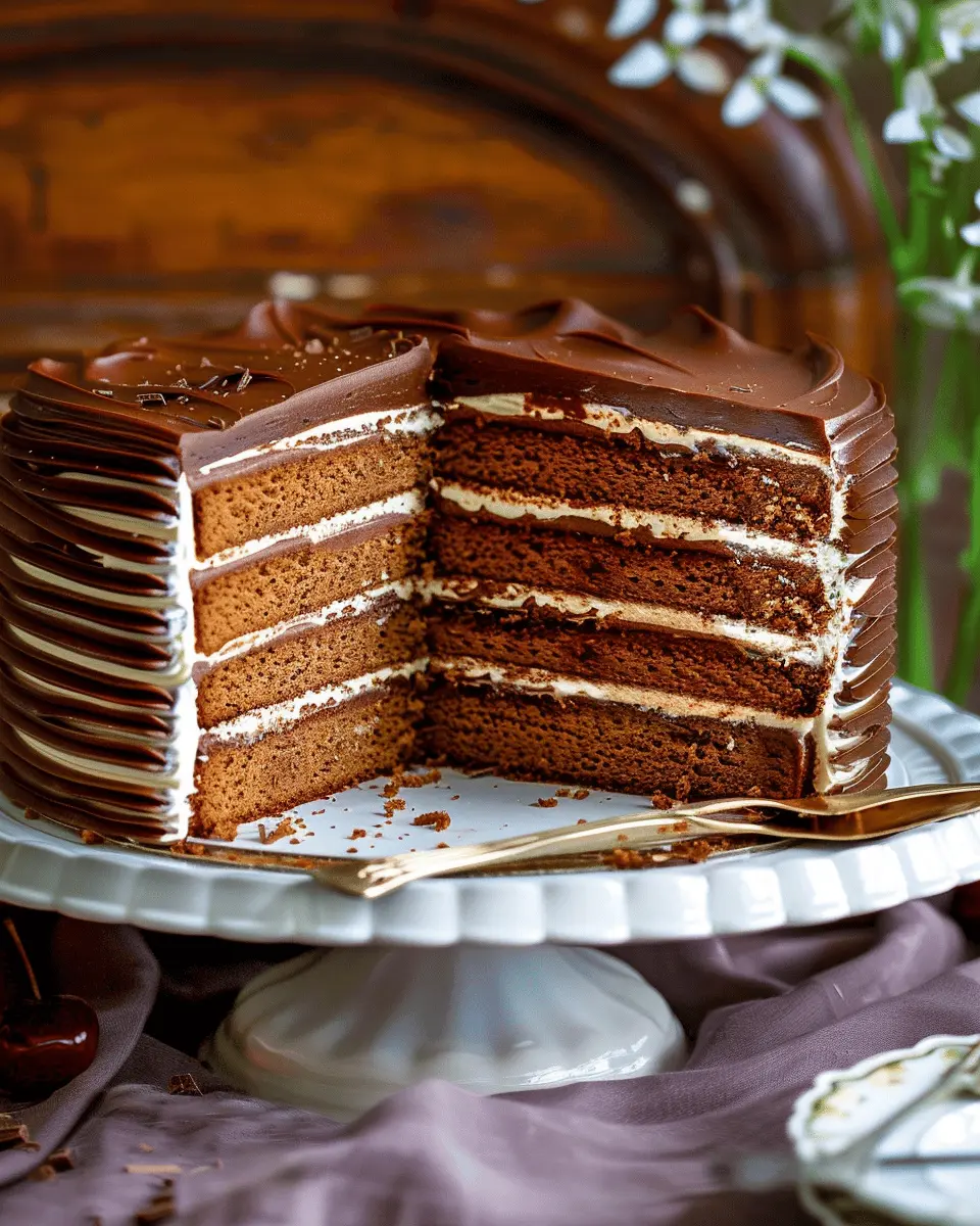 Yes, ingredient substitutions are often possible! For example, if you need a dairy-free option, you can substitute regular milk with almond or oat milk. You can also replace all-purpose flour with gluten-free flour for a gluten-free 15 Layer Chocolate Cake. If you’re craving a different flavor, feel free to switch up the cocoa for dark or even white chocolate. Just remember, substitutions may slightly alter the texture or flavor, but that’s part of the fun!