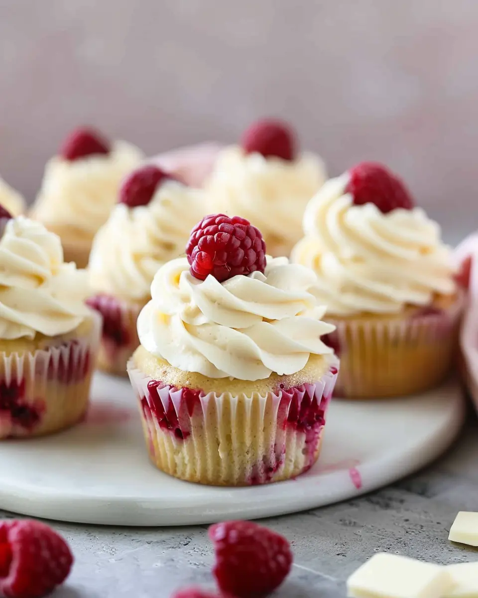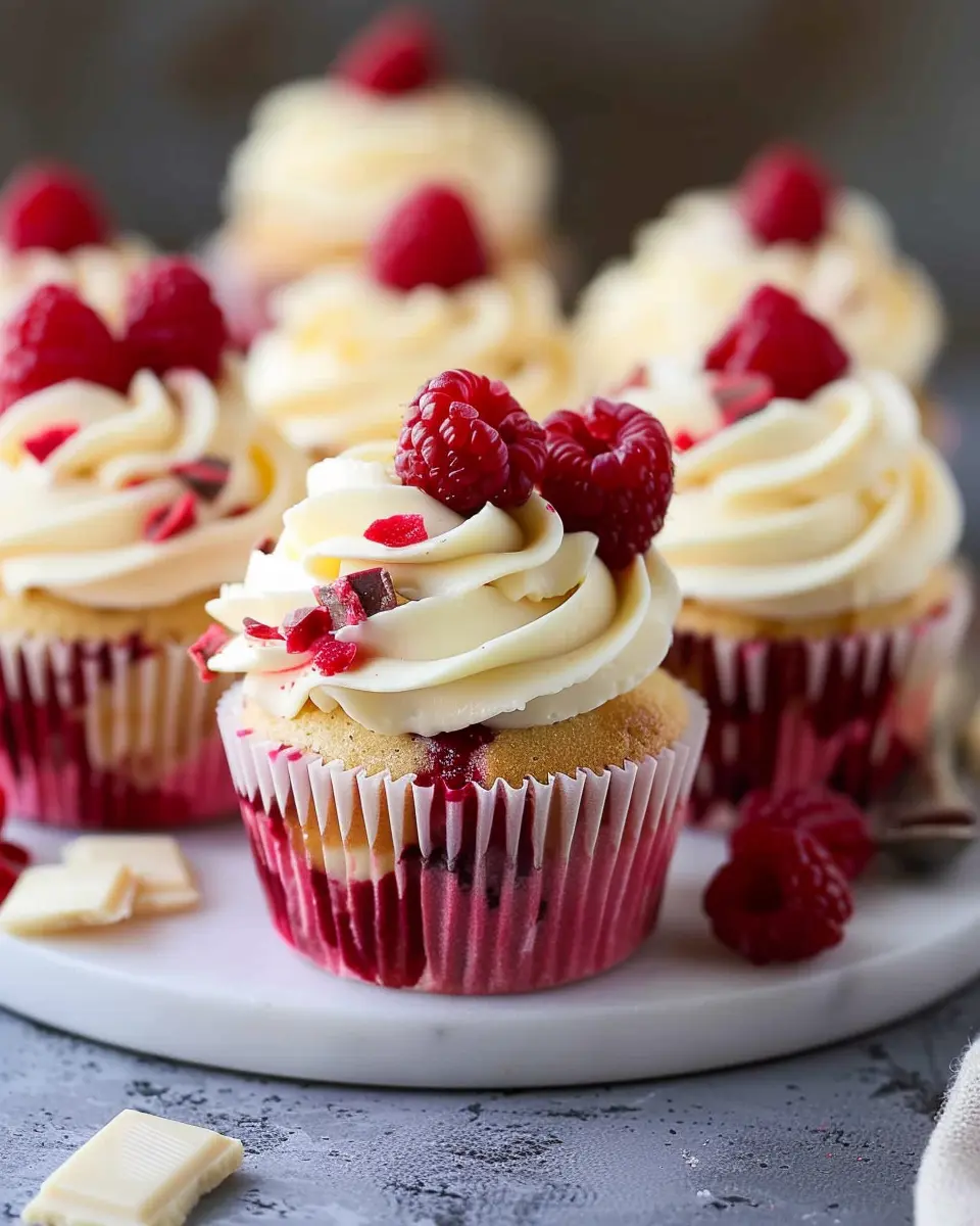 Indulge in these delightful white chocolate raspberry cupcakes that perfectly balance sweetness and tartness.