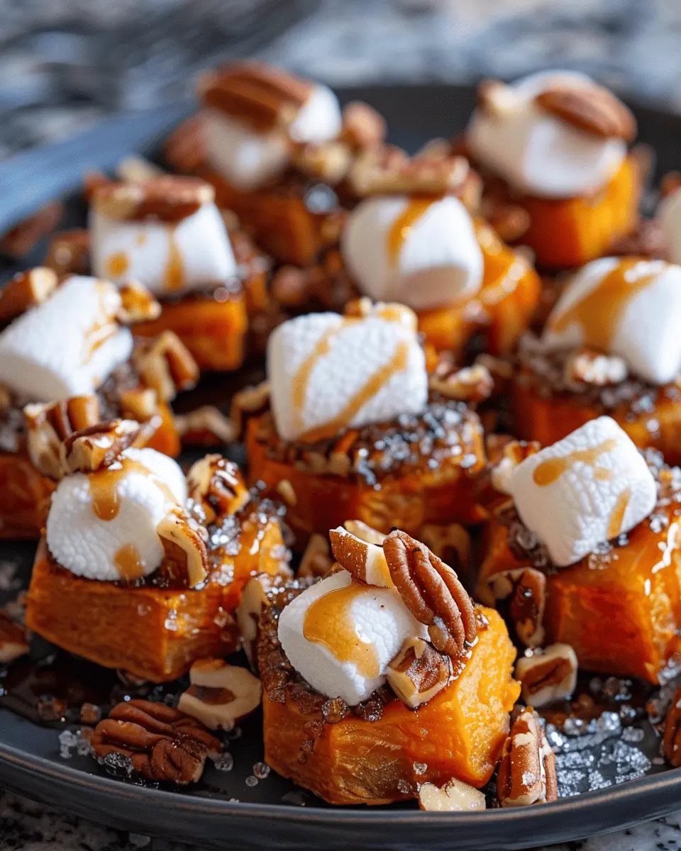 Caramelized Sweet Potato Bites: Indulgent with Brown Sugar Marshmallows and Pecans