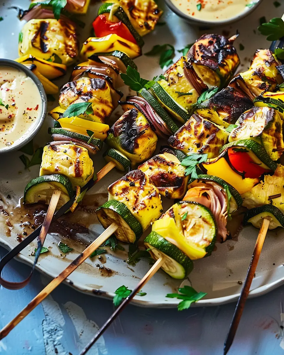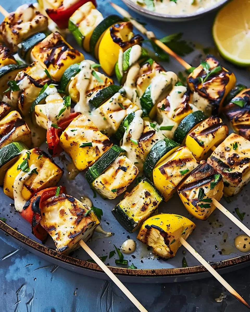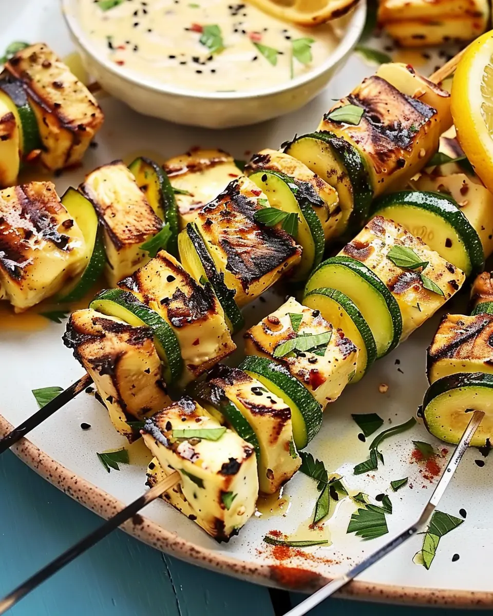 PrintCharred Zucchini and Halloumi Kebabs: Easy Lemon-Tahini Delight