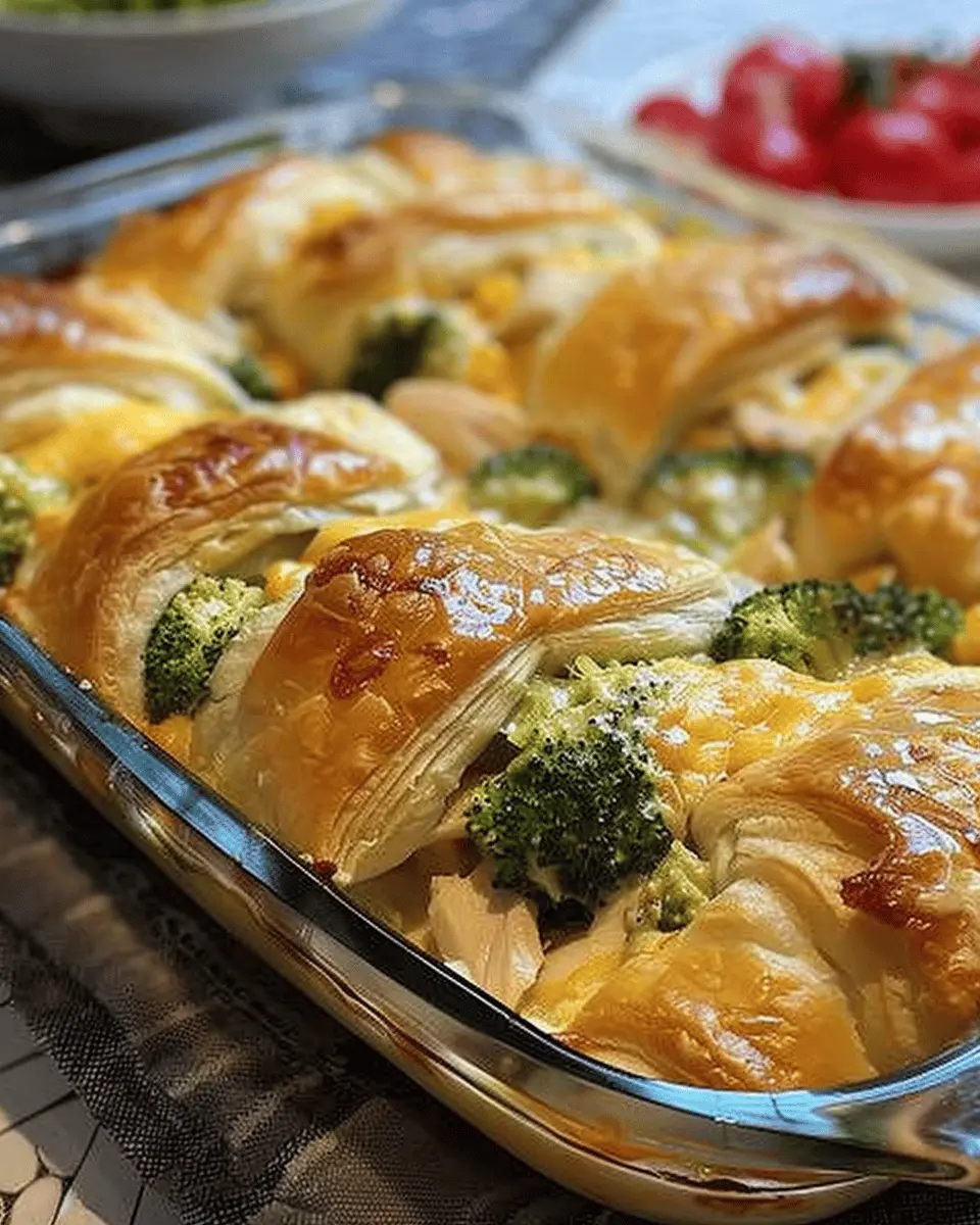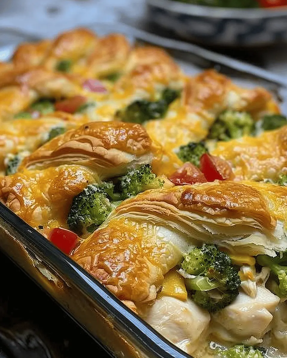 Cheesy Chicken and Broccoli Crescent Bake is a delicious and easy family favorite that combines flaky crescent rolls, tender chicken, and nutritious broccoli.