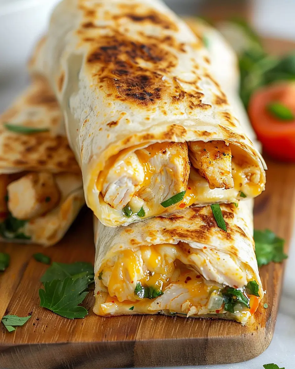 In addition to their savory flavor, cheesy garlic chicken wraps are also a hit for meal prepping. Make a batch on Sunday, and you’ll have delightful lunches ready for the week. As an added bonus, they’re easy to store and heat up, which makes them perfect for those on-the-go moments.