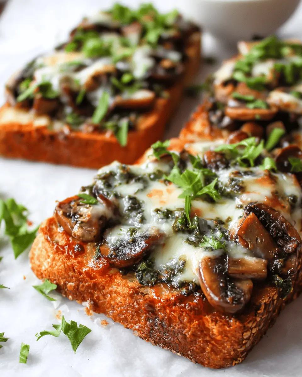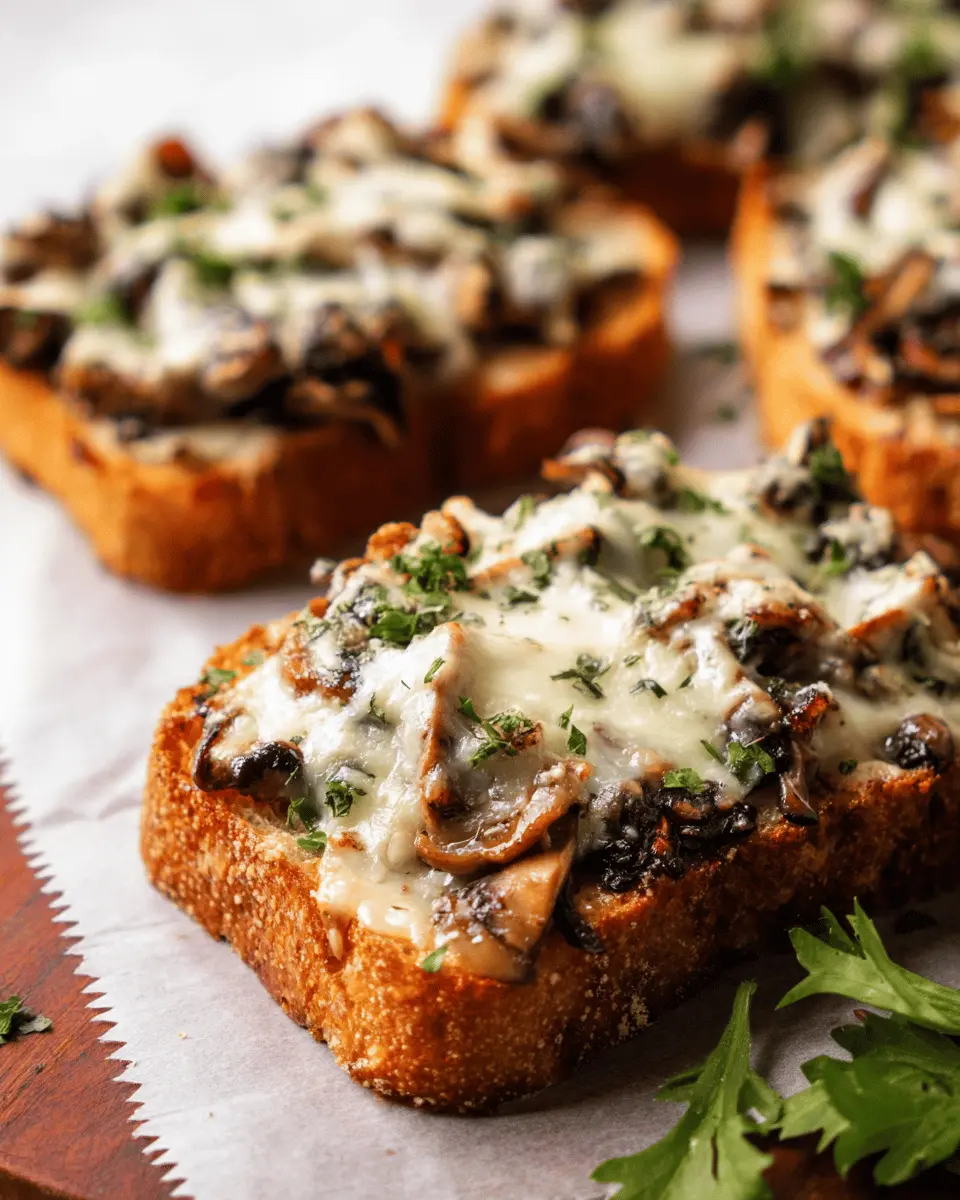 This Cheesy Garlic Mushroom Bruschetta is a delightful appetizer that combines savory mushrooms and melty cheese on crispy bread.
