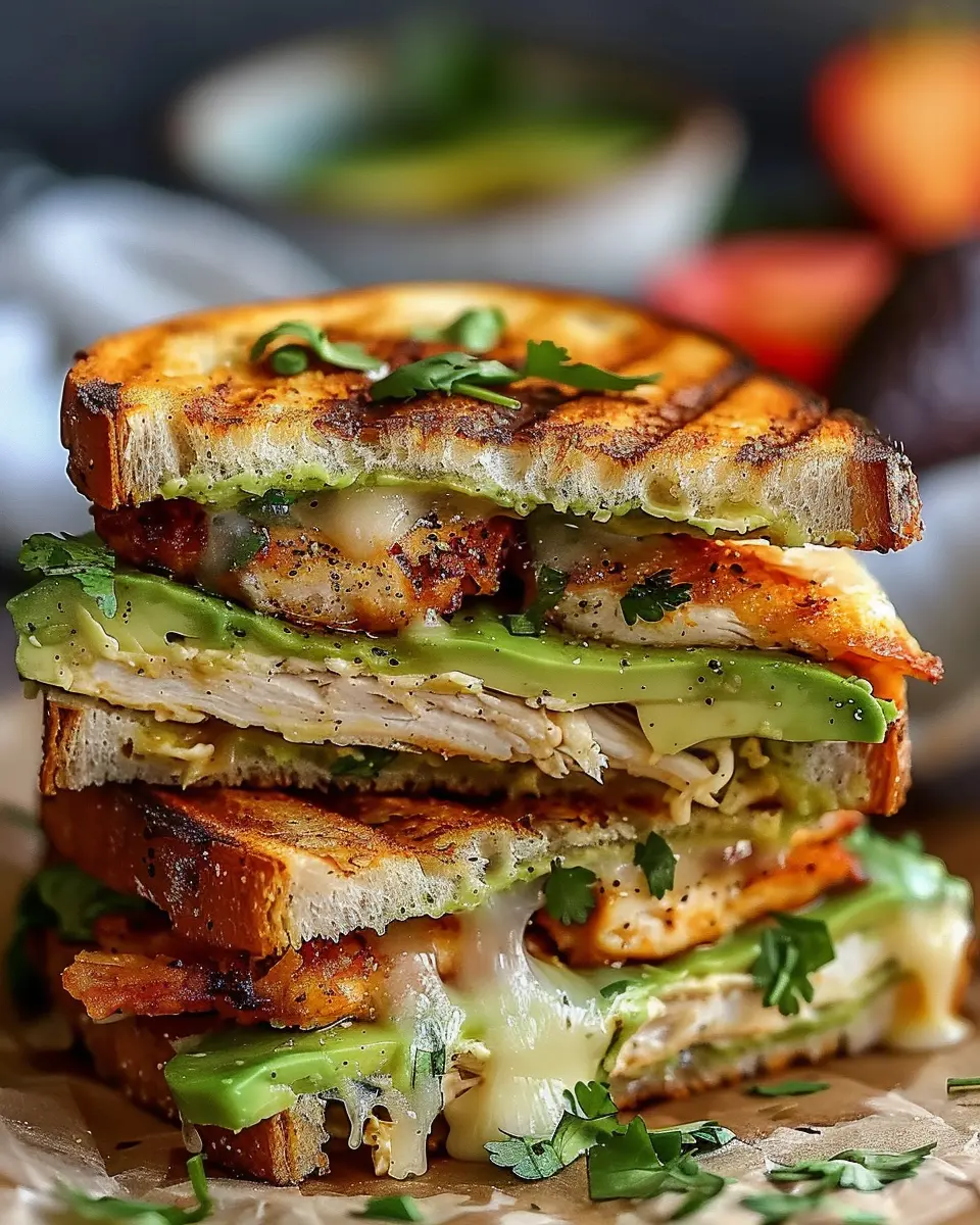 A delicious and comforting Chicken Avocado Melt Sandwich that combines tender chicken, creamy avocado, and melted cheese.