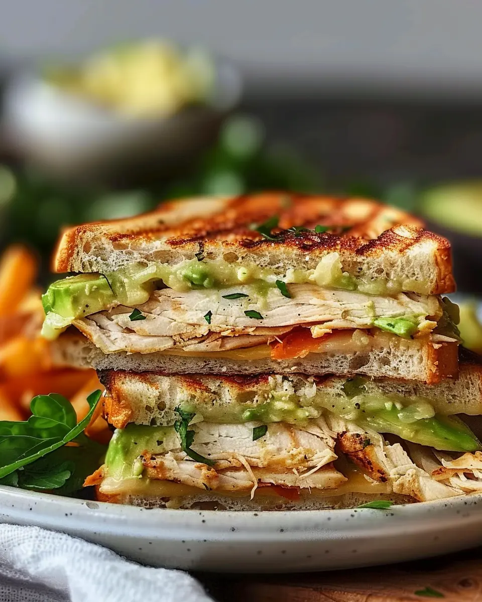 Indulge in the rich flavors of the Chicken Avocado Melt Sandwich, a delightful meal that combines tender chicken, creamy avocado, and melted cheese.