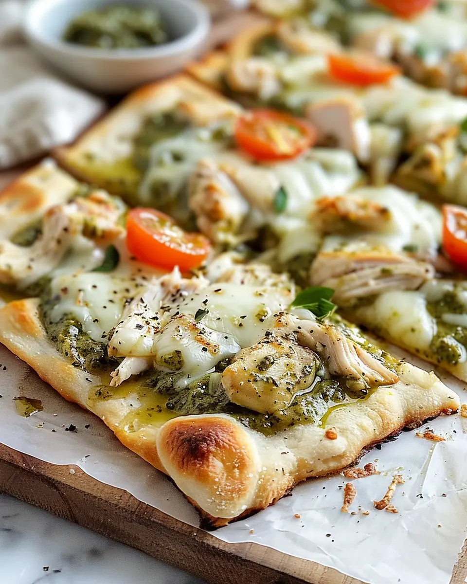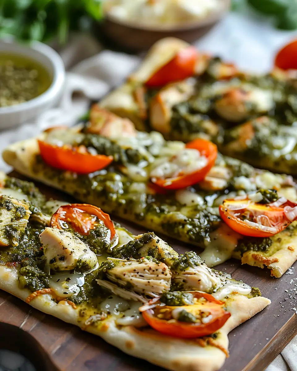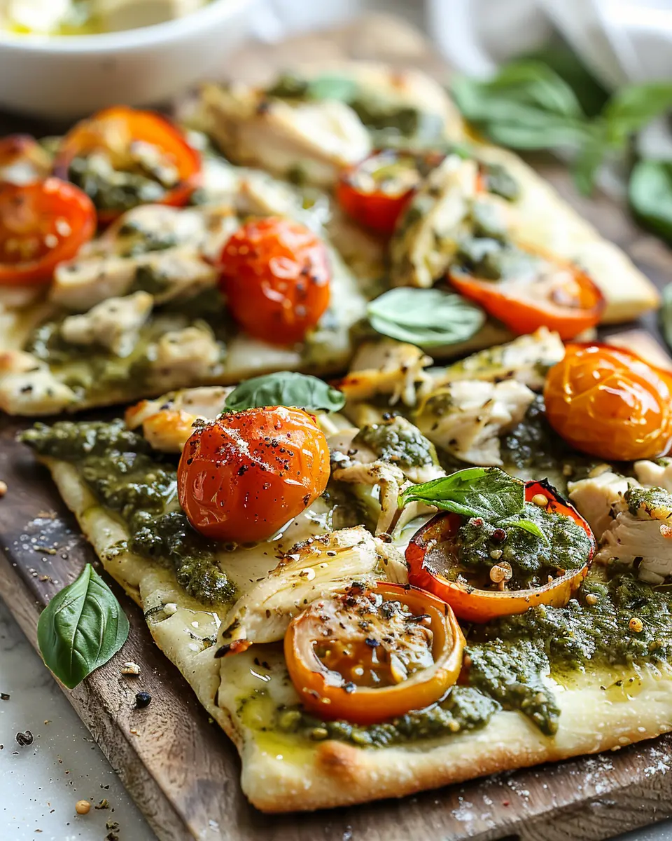 PrintChicken Pesto Flatbread: Easy Recipe for a Flavorful Dinner