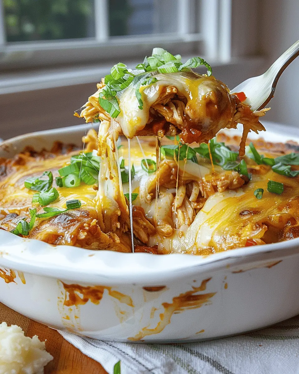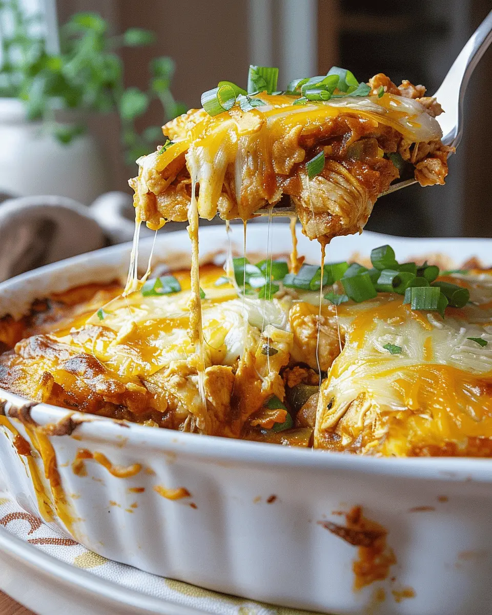 Now for the fun part! Spread your chicken filling evenly over the enchilada sauce-coated cornbread layer. Top it off with a generous sprinkle of shredded cheese—because, let’s be honest, cheese makes everything better. Pop it into the oven, still at 400°F, and bake for an additional 15-20 minutes, until the cheese is bubbly and golden.