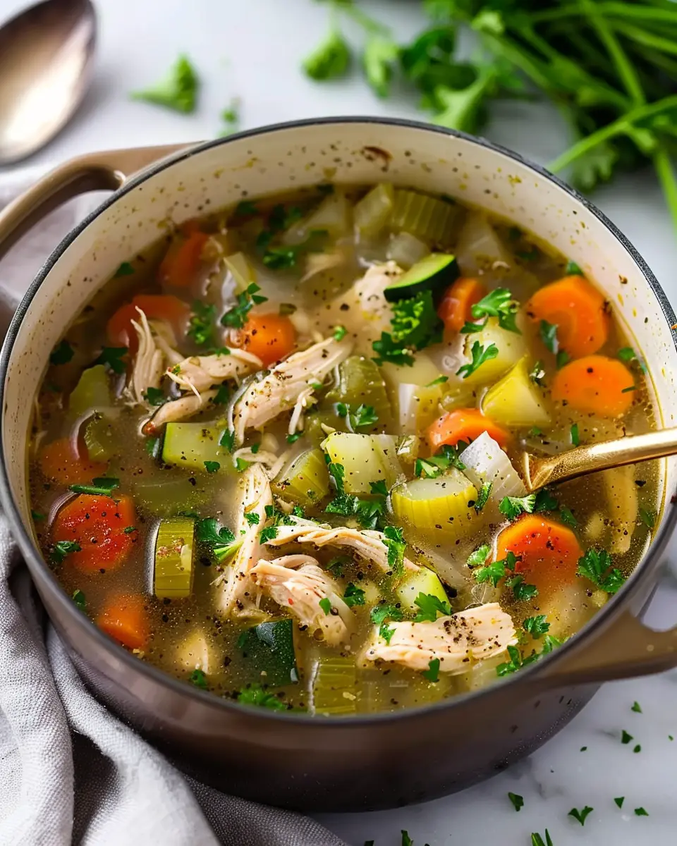 A comforting and nourishing chicken vegetable soup perfect for cool evenings.