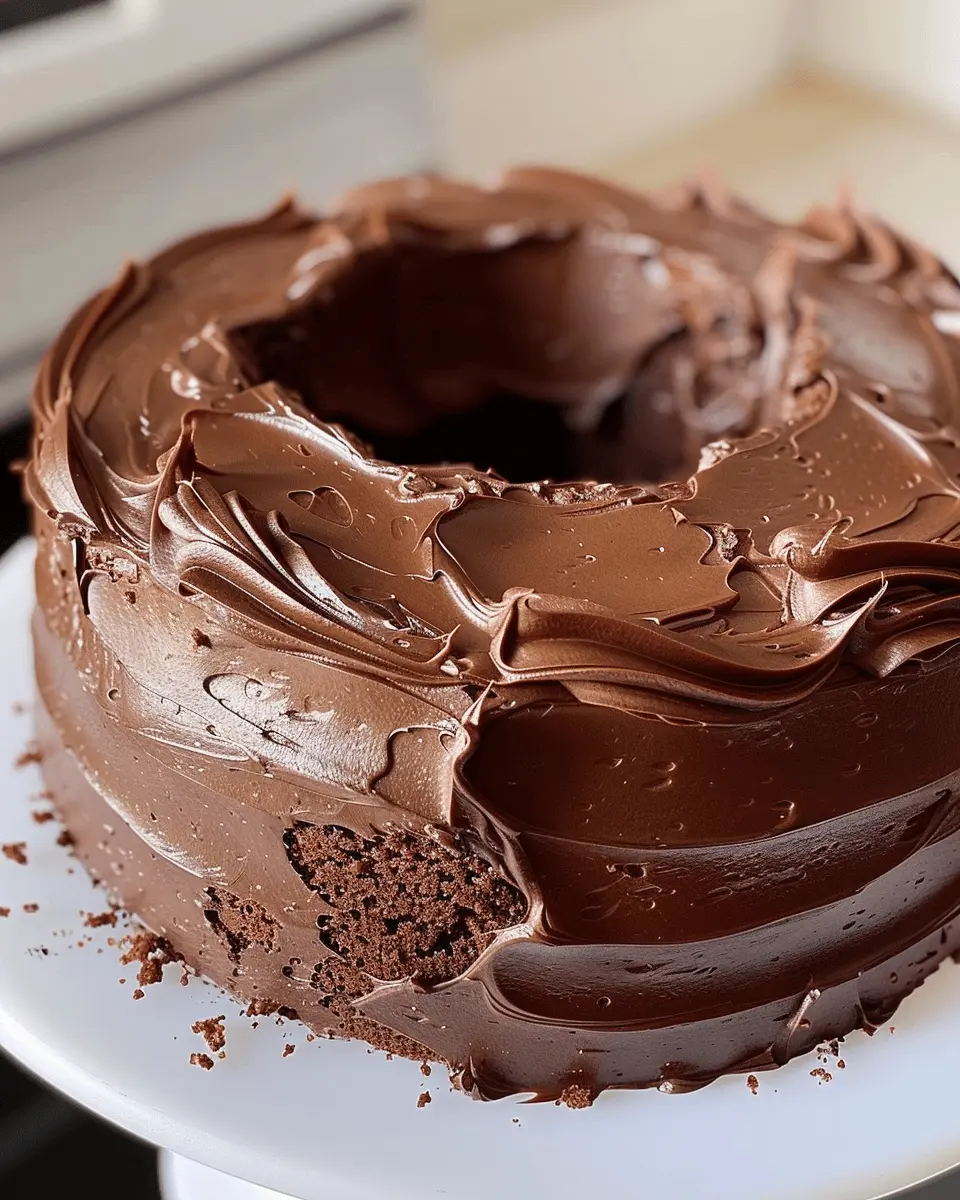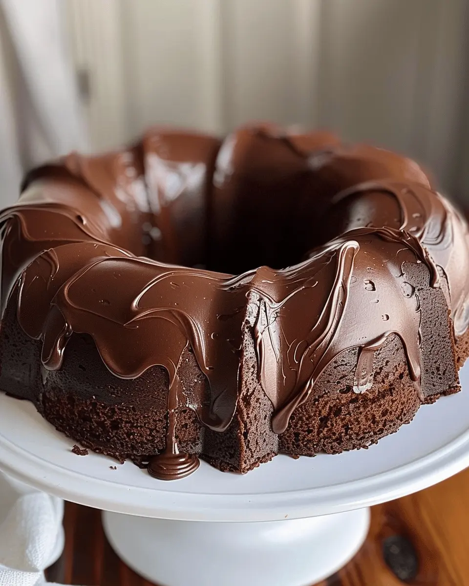 A rich and indulgent chocolate pound cake topped with decadent chocolate frosting.