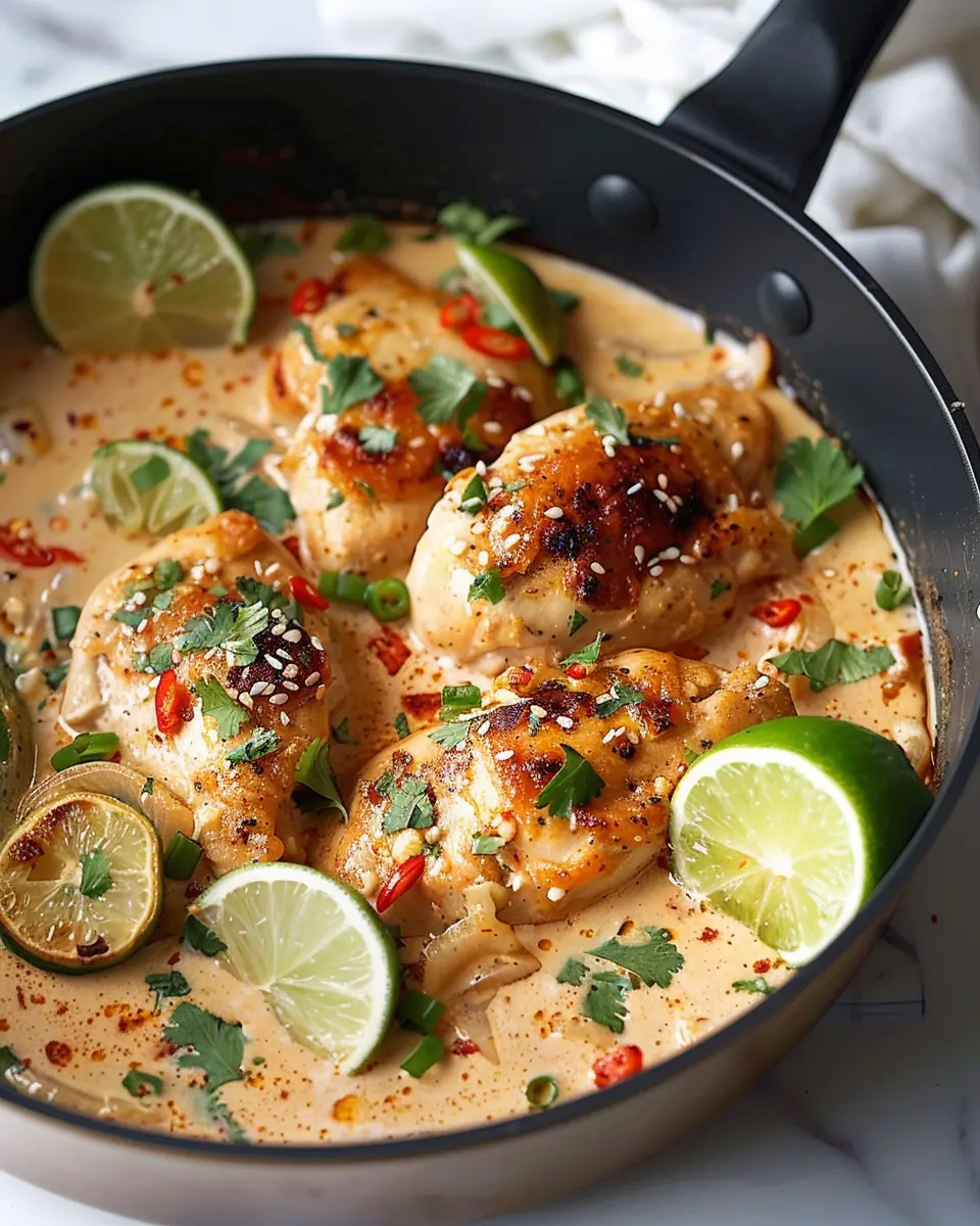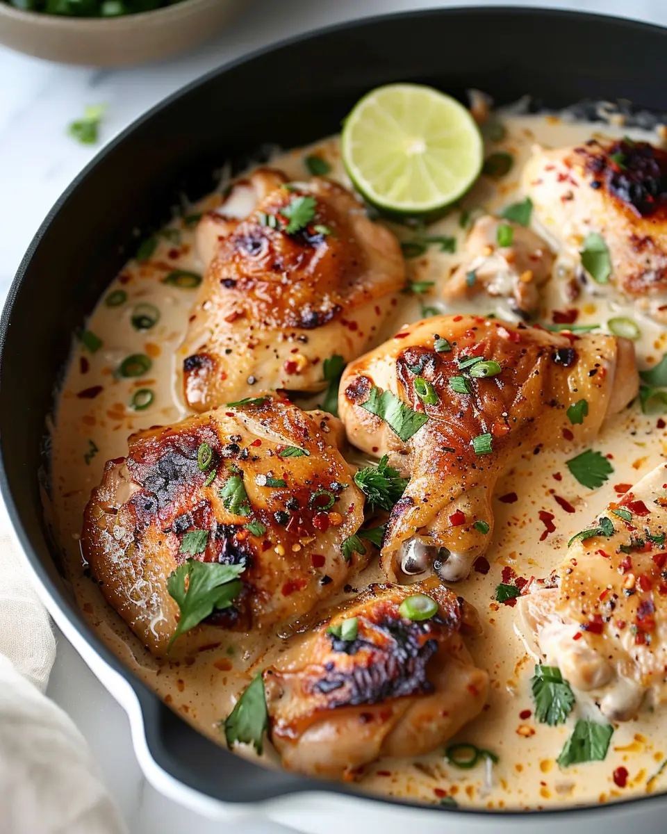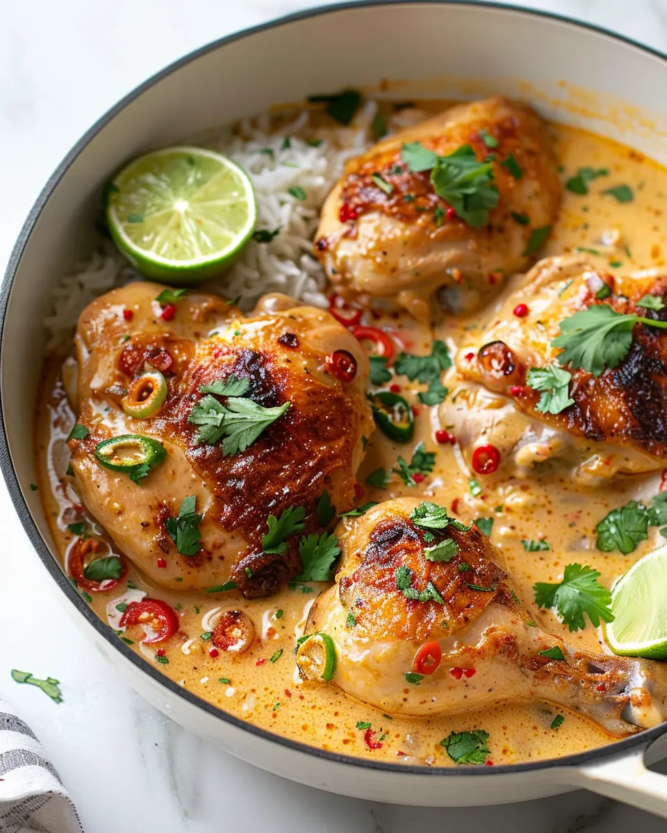 A creamy and indulgent recipe featuring tender chicken cooked in coconut milk, perfect for a comforting meal.