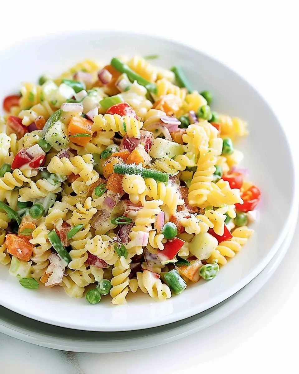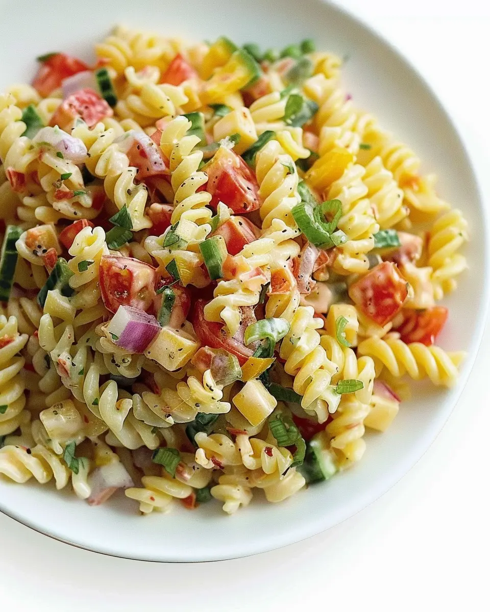Versatile and visually appealing, creamy pasta salad is great for various occasions. Whether it’s a casual summer barbecue, a potluck gathering, or a cozy family dinner, it never disappoints. You can even pack it for a picnic! Just imagine enjoying a delicious bowl of pasta salad under the sun—perfect, right? It can also serve as a fantastic dish for meal prep, saving you time during busy weekdays. So go ahead and whip up a big batch; you’re bound to love it through every season!