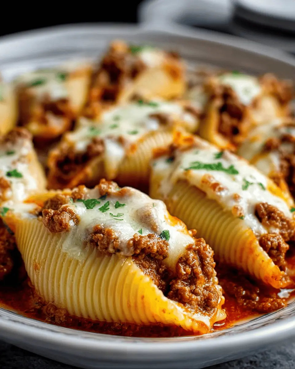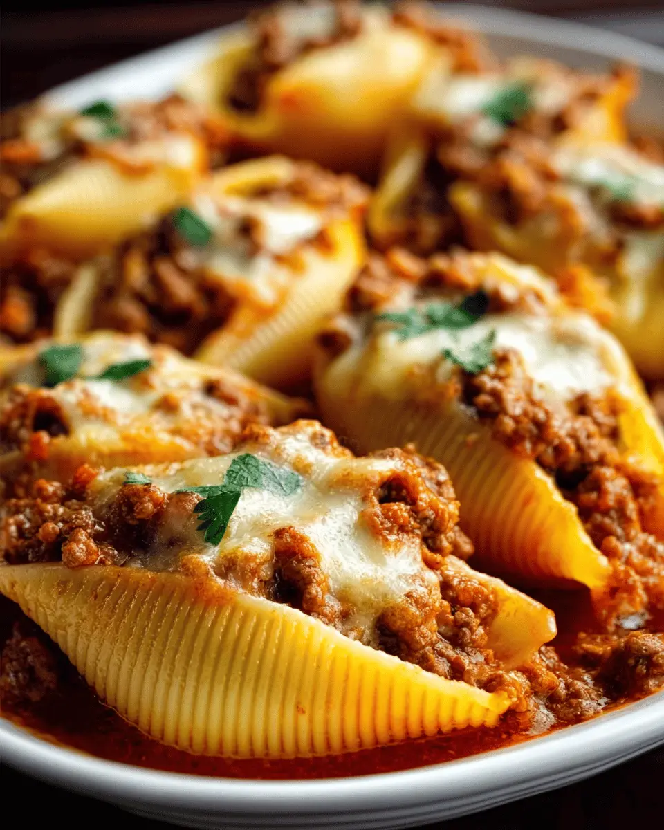 Once baked, let the dish cool for a few minutes before serving. Garnish with fresh herbs like parsley or basil for a burst of color and flavor. Enjoy your creamy ricotta beef stuffed shells pasta with a side salad or garlic bread for a truly satisfying meal. Happy cooking!