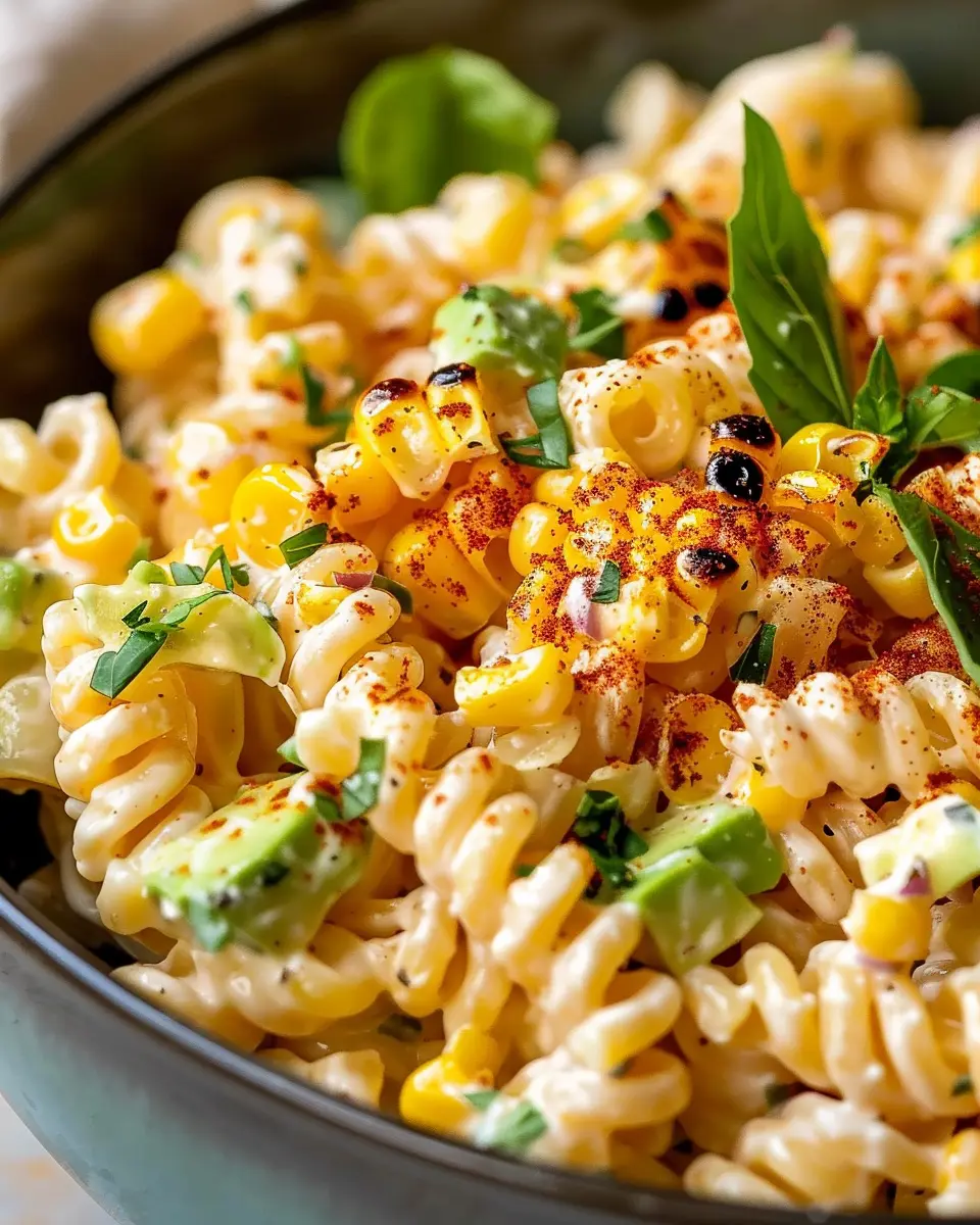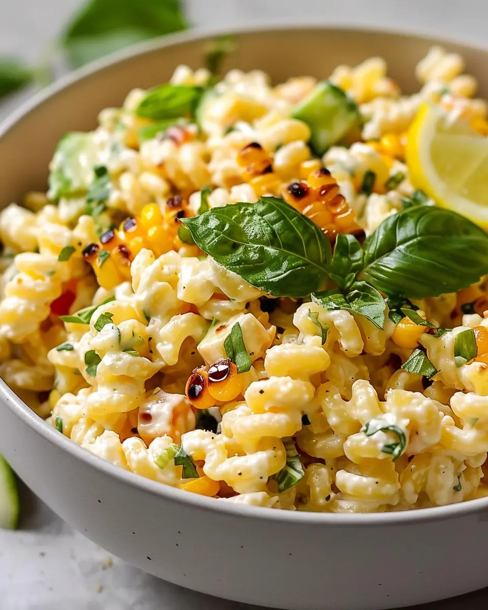 Enjoy this delicious and refreshing creamy street corn pasta salad, perfect for summer gatherings.
