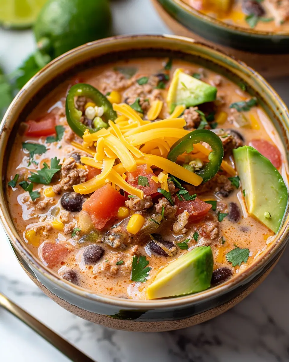 The last step to your creamy taco soup is crucial: adjust the seasoning. Before serving, taste the soup to see if it needs any additional salt, pepper, or perhaps a splash of lime juice for that zesty kick.