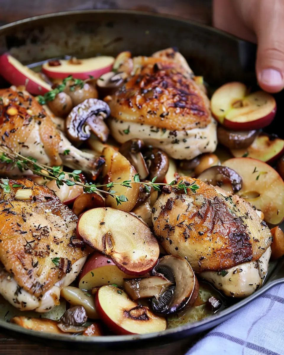 PrintCreamy Thyme Chicken Delight with Sautéed Apples and Mushrooms