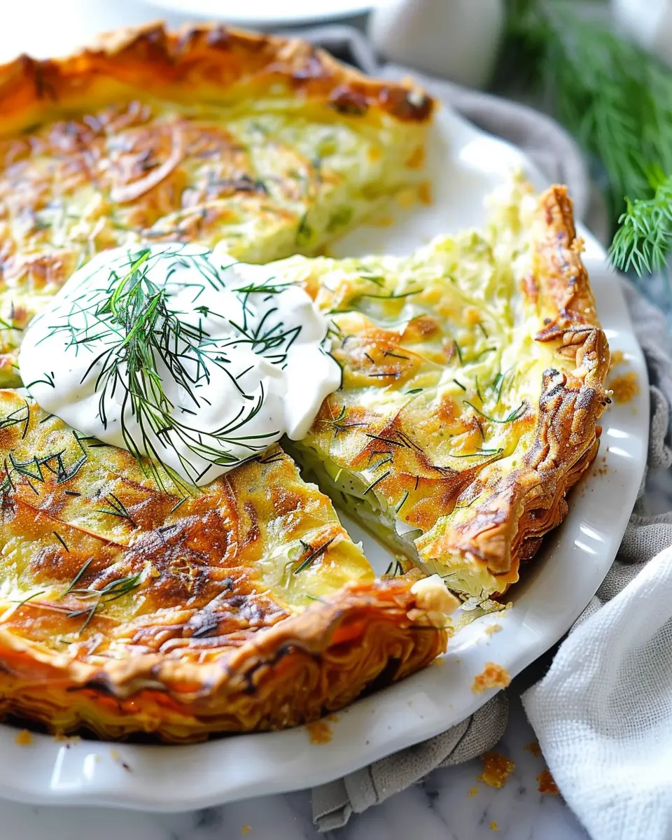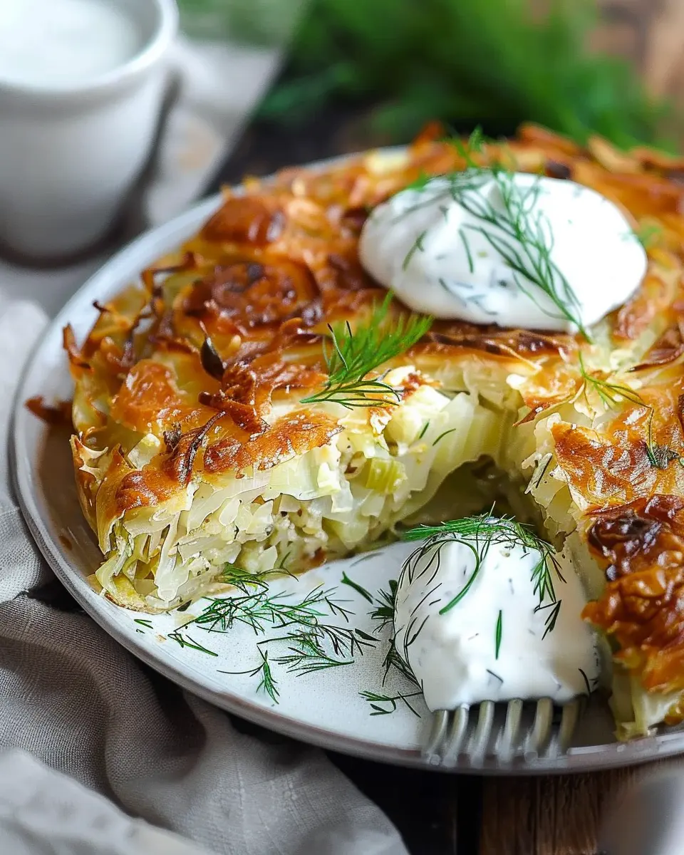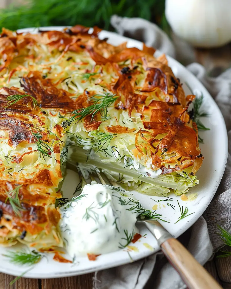 PrintCrispy Cabbage Pie with Dill Cream Sauce: A Comforting Delight