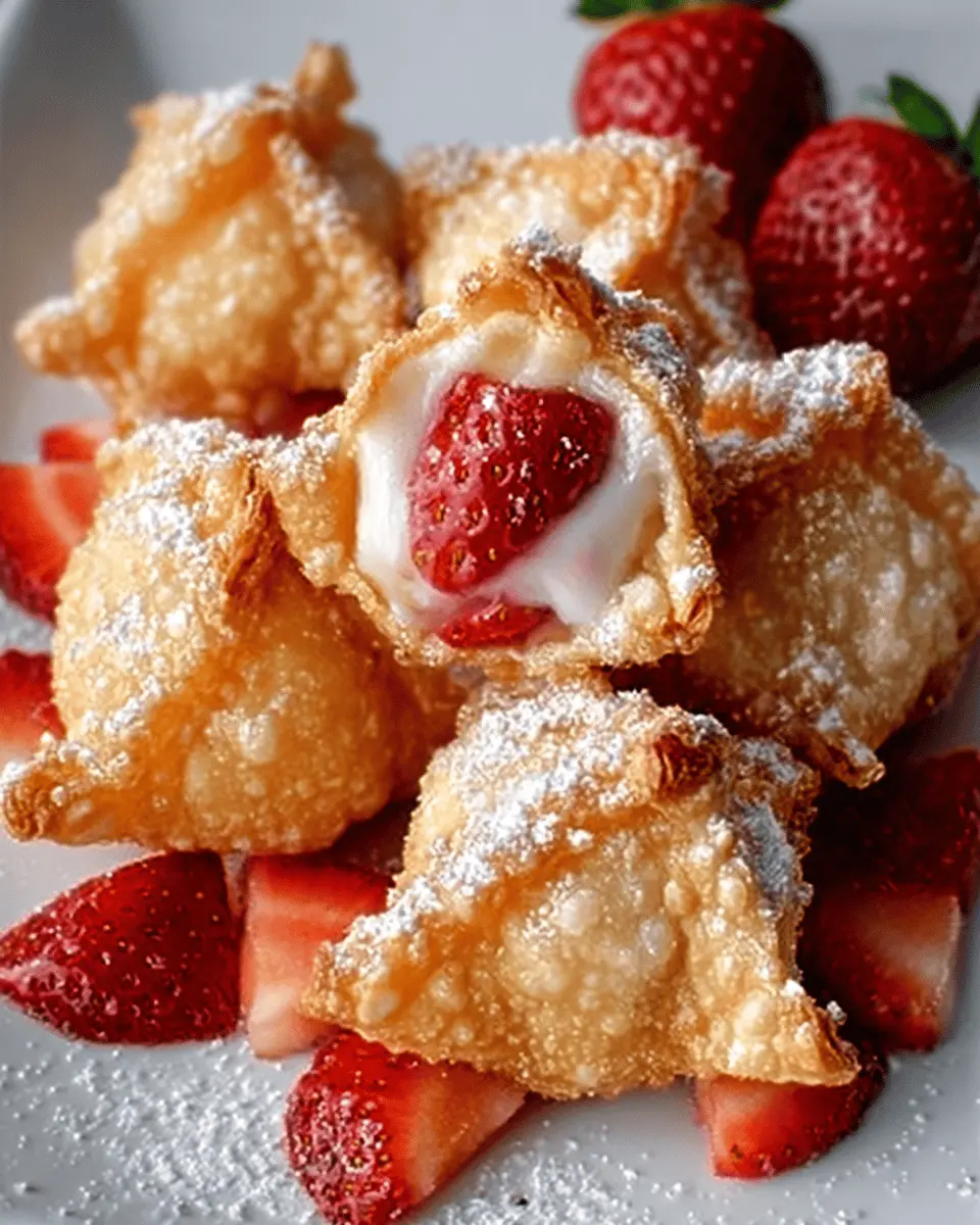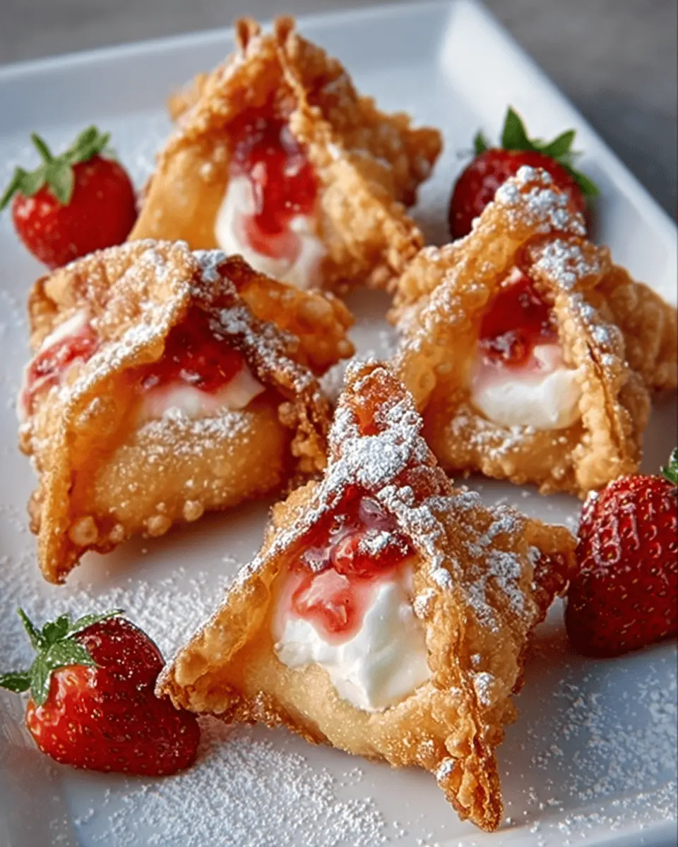 PrintDeep-Fried Strawberry Cheesecake Wonton Bites: Indulgent Delight