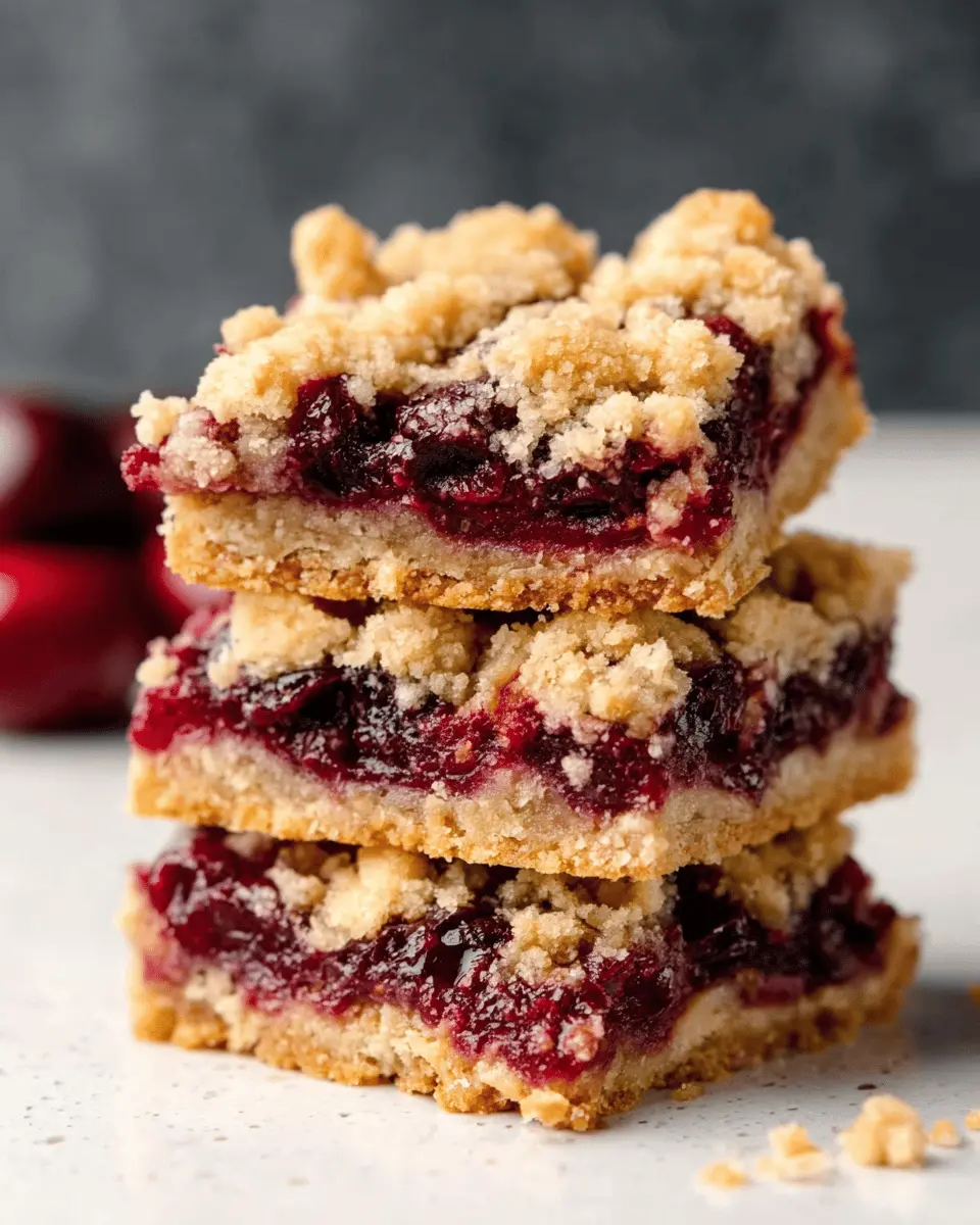 • Crowd-Pleaser: Hosting a get-together? These bars are your go-to dessert. They appeal to almost everyone—whether you’re having casual drinks with colleagues or a gathering with friends. The crunchy crumble paired with luscious cherry filling creates a perfect harmony of textures and flavors.
