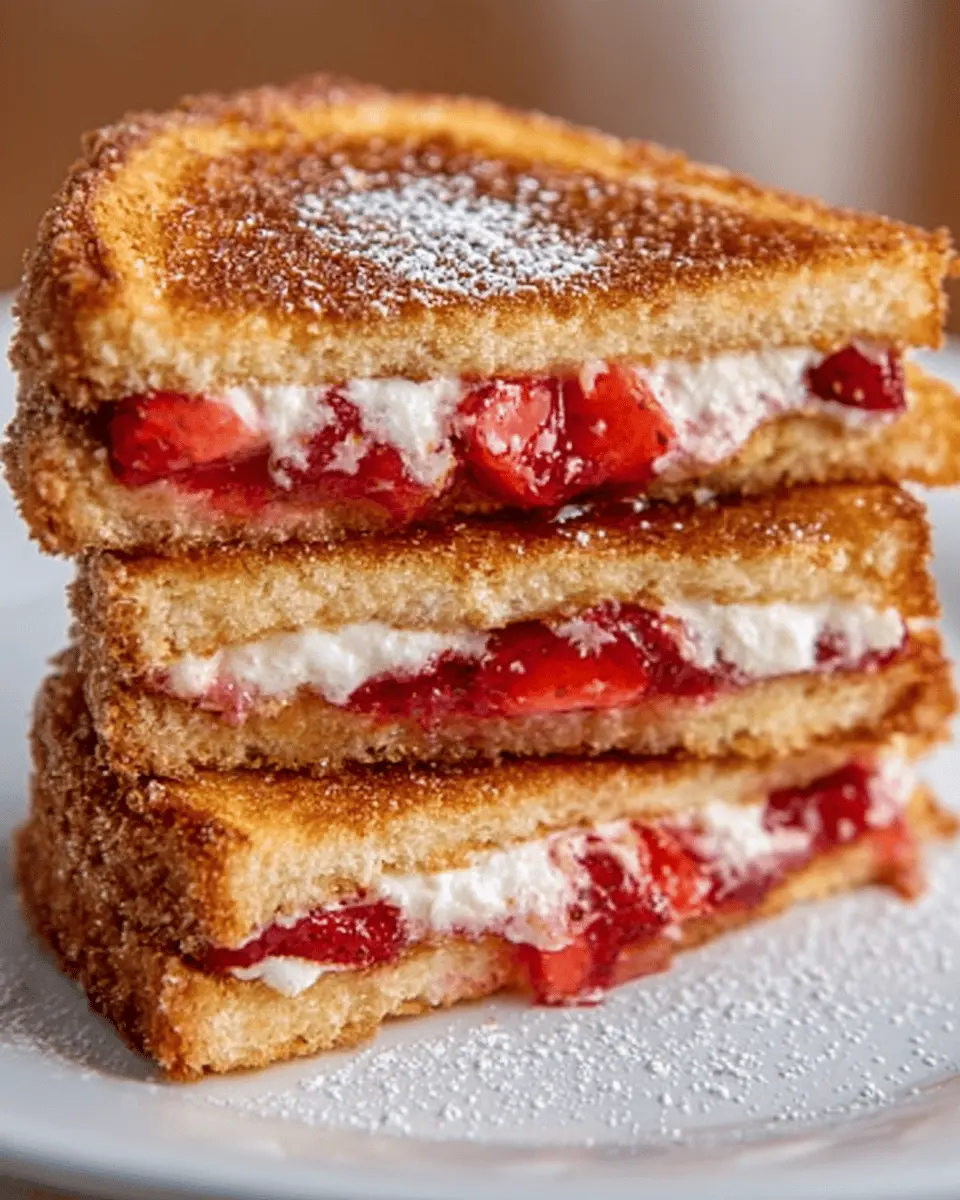 These delightful sandwiches are a game changer for a quick dessert or a spontaneous weekend brunch with friends. Not only are they surprisingly easy to make, but they also offer a unique spin on traditional comfort foods. Imagine biting into that warm, crunchy exterior, followed by a creamy filling and juicy strawberry burst—pure bliss for your taste buds.