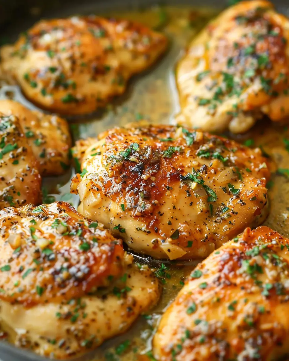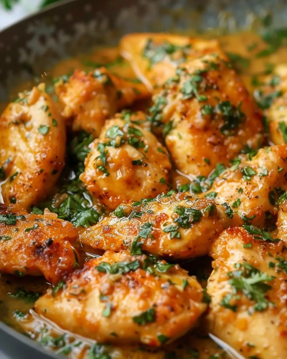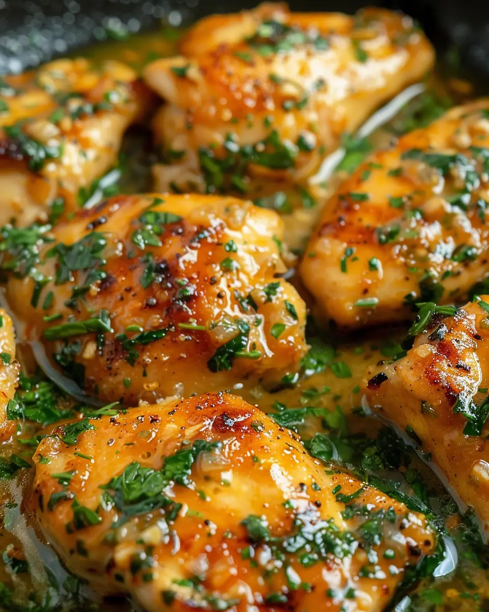 Return the cooked chicken pieces to the skillet, ensuring they’re beautifully coated with the luscious garlic butter sauce. Let the chicken simmer in the sauce for a couple of minutes, allowing the flavors to meld perfectly. Finally, garnish with freshly chopped parsley for that pop of color and a little freshness to balance the richness.