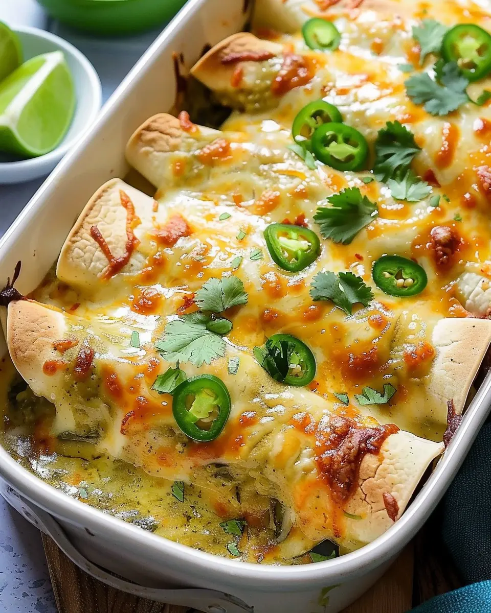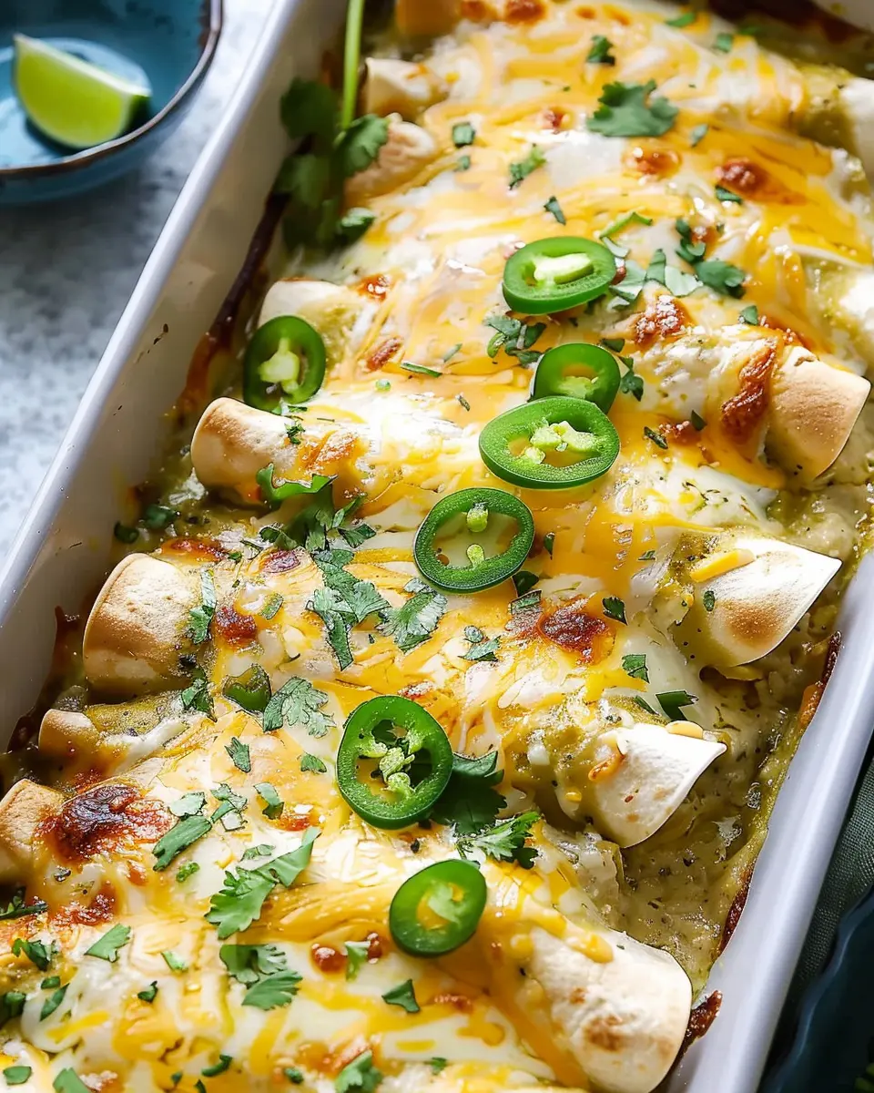 Elevate your green enchiladas with chicken by experimenting with toppings! Try a sprinkle of crumbled queso fresco or creamy avocado slices for that extra layer of flavor. A dollop of sour cream or a drizzle of homemade green salsa can also make a world of difference.