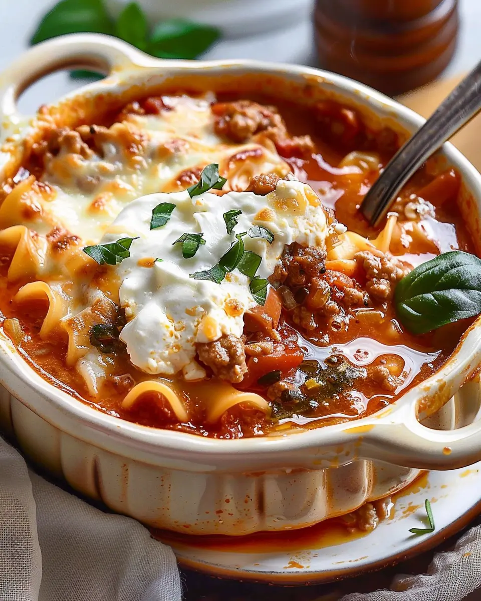 PrintHigh Protein Lasagna Soup: A Healthy Twist with Turkey Bacon and Chicken Ham