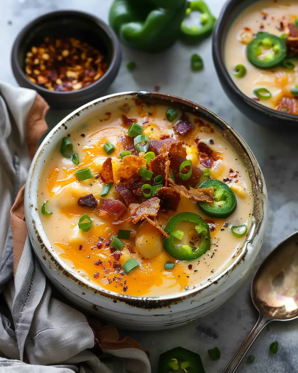 A creamy, spicy soup inspired by jalapeño poppers, perfect for a cozy night in.