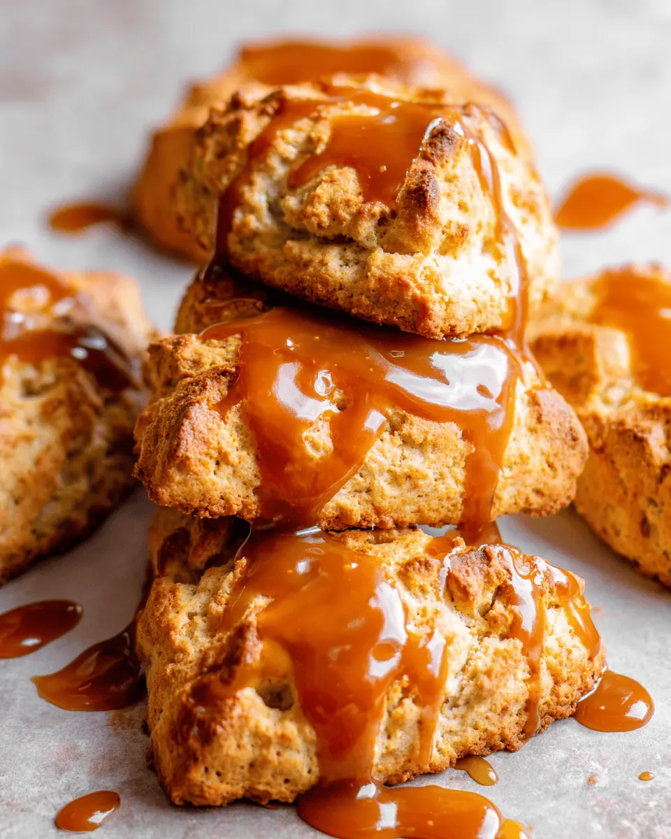 - Drizzle the remaining caramel sauce over the scones.