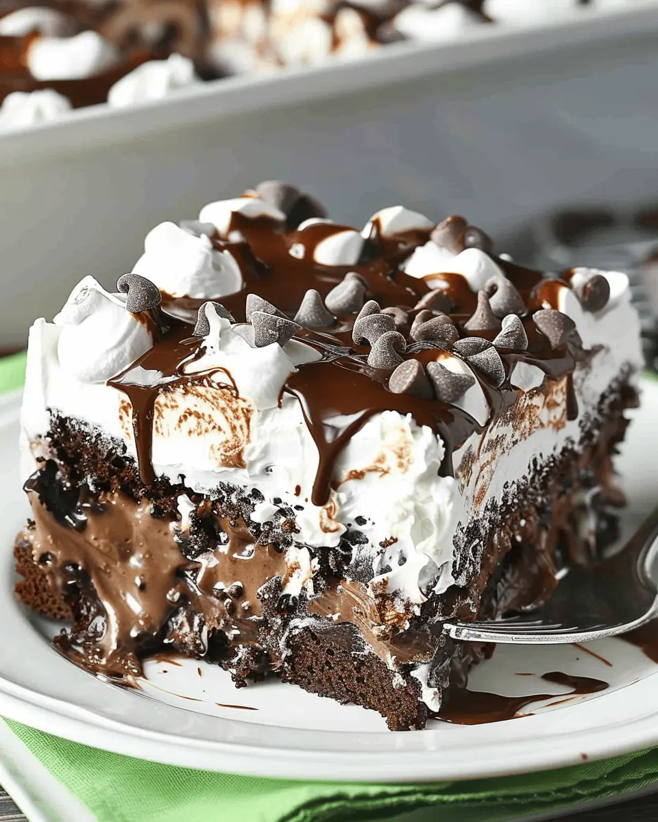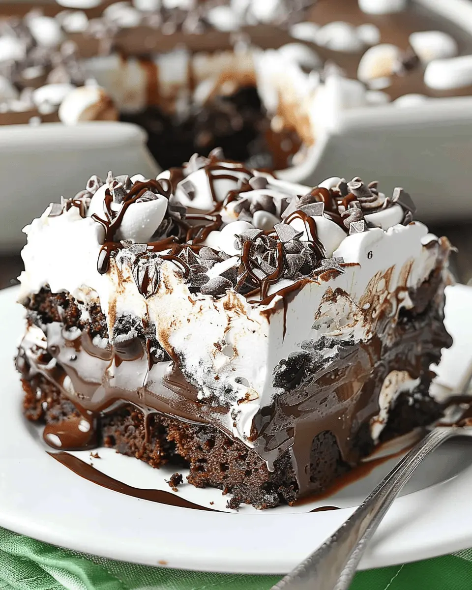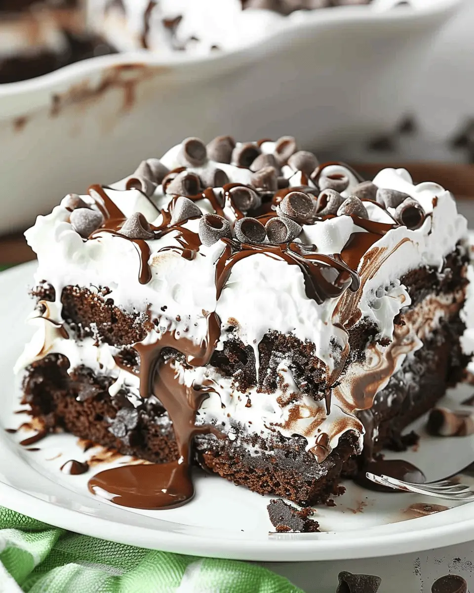 Another reason to love the Marshmallow Chocolate Poke Cake is its versatility. You can customize it in a hundred different ways—think about adding crushed cookies on top for some crunch or drizzling caramel sauce for an extra punch of flavor. It’s an ideal dessert for any occasion, from casual family dinners to festive holidays. Not to mention, it’s a hit among both kids and adults, making it a crowd-pleaser every time.