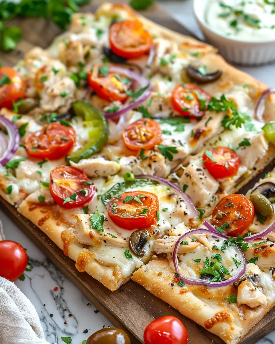 In summary, preparing a Mediterranean Chicken Flatbread isn’t just about following a recipe; it’s about enjoying the process and sharing delicious food with loved ones. It’s also a flexible dish—mix and match as per your preferences. With every bite, you’re savoring not just flavors but the joy of a homemade meal. Happy cooking!