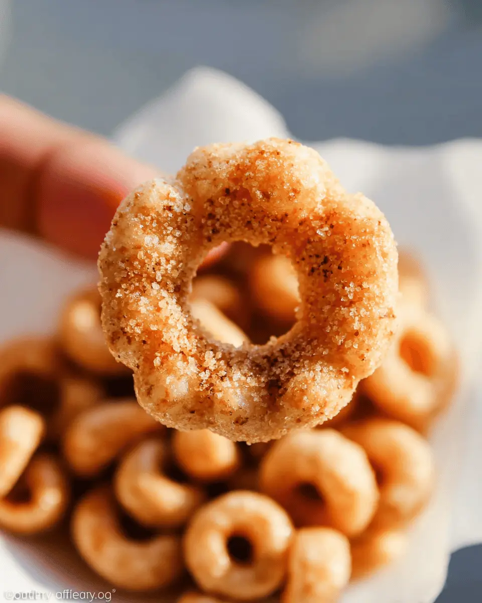 A delightful treat combining the beloved flavor of mini donuts with hot buttered Cheerios.