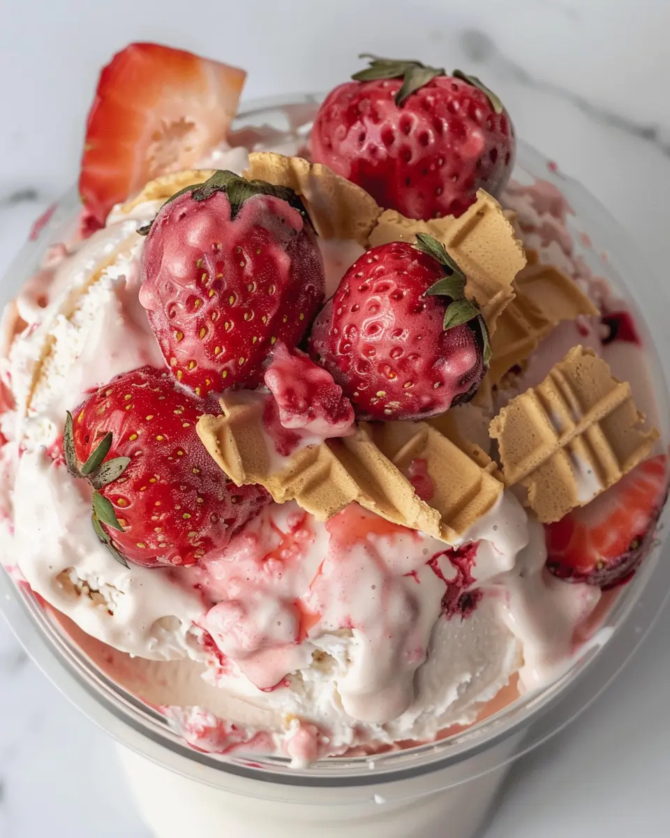 Indulge in a deliciously creamy and fruity dessert that mimics the classic Baskin Robbins Very Berry Strawberry ice cream, made effortlessly with the Ninja Creami.
