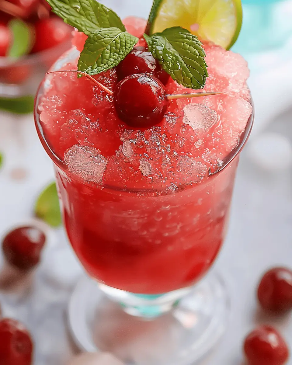 1. In a blender, combine the cherry soda, crushed ice, grenadine, and lime juice.