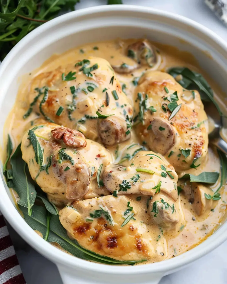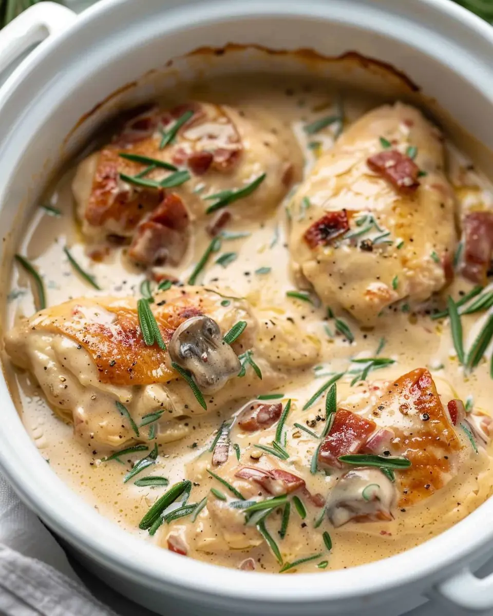 Delight in the creamy flavors of Slow Cooker Creamy Tuscan Chicken, enhanced with turkey bacon for a healthier twist.