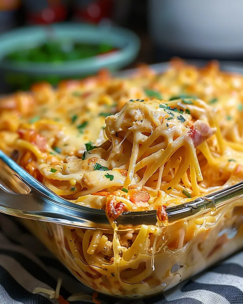 • Flavor Versatility: With ingredients like chicken ham, turkey bacon, and a kick of spice, this Spicy Southern Cheesy Chicken Spaghetti Casserole caters to various palates. You can easily adjust the seasoning to suit your personal taste.