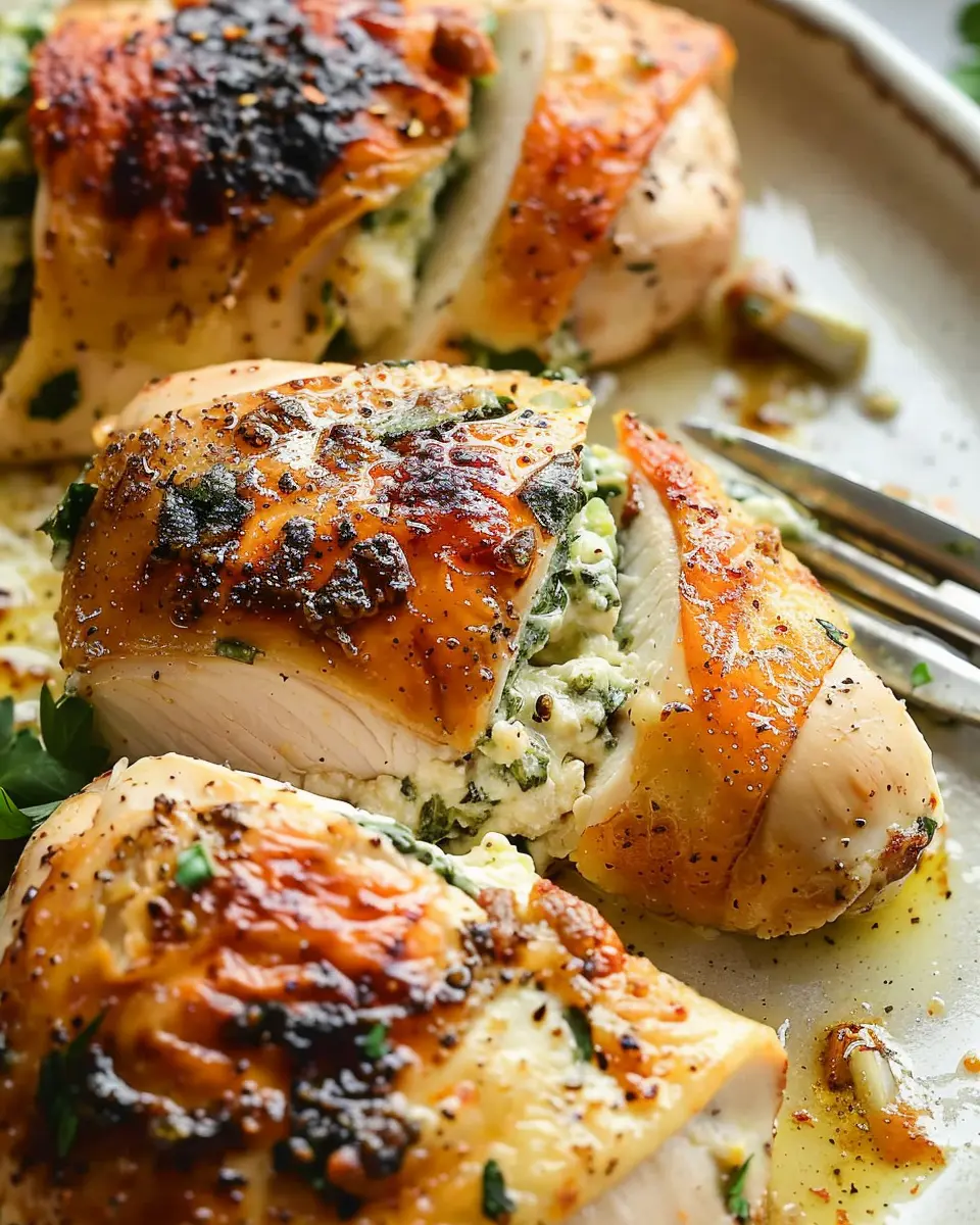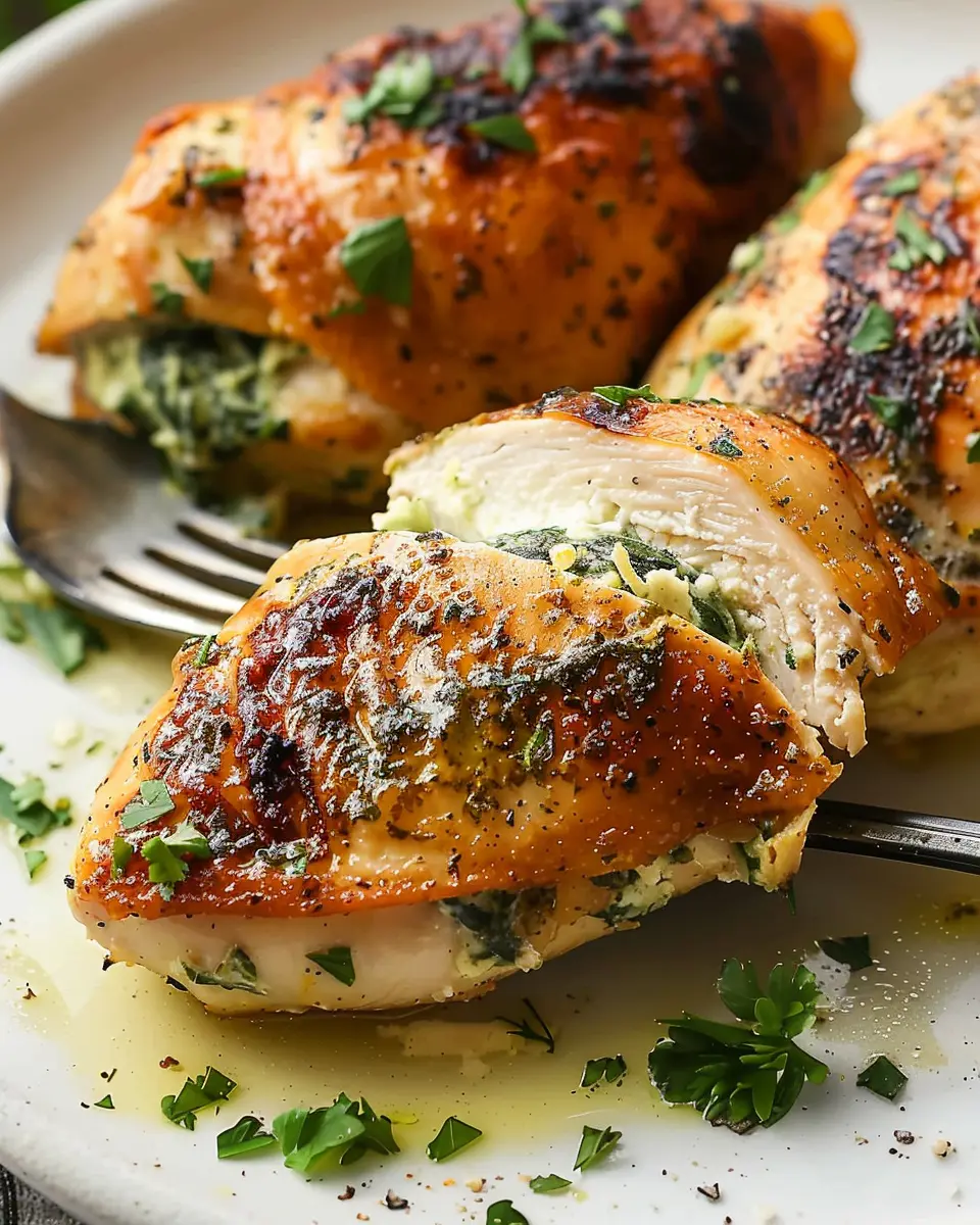 And there you have it! Your spinach stuffed chicken is now bursting with flavor and ready to be devoured. Serve it alongside a fresh salad or some roasted vegetables for a balanced meal. Enjoy the delightful reaction on your friends’ faces when they take that first bite!