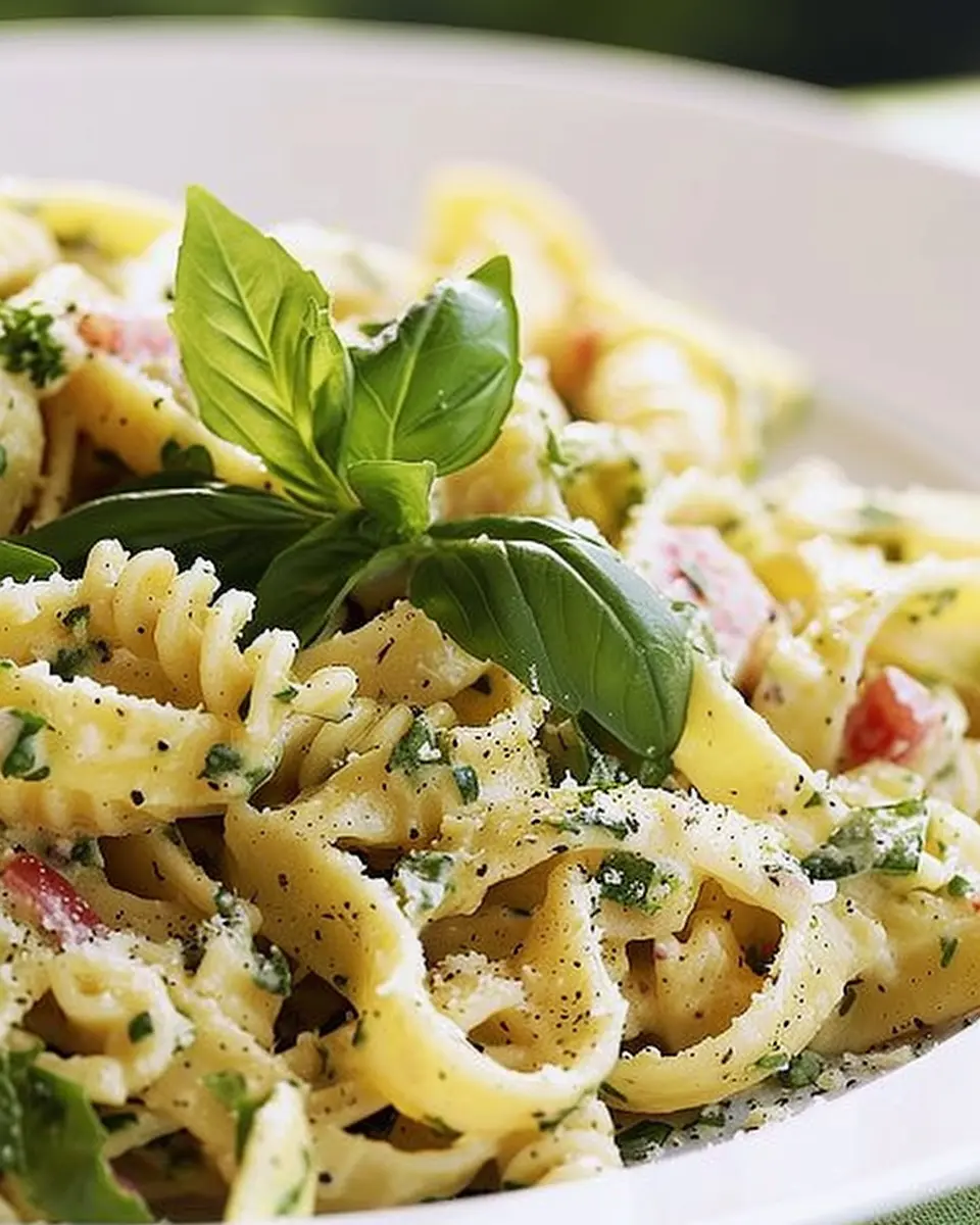 PrintSummer Herb Pasta: Easy Recipe with Turkey Bacon and Fresh Flavors