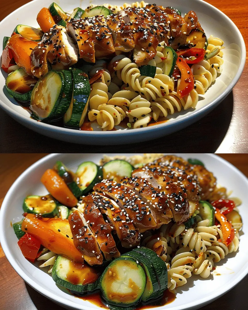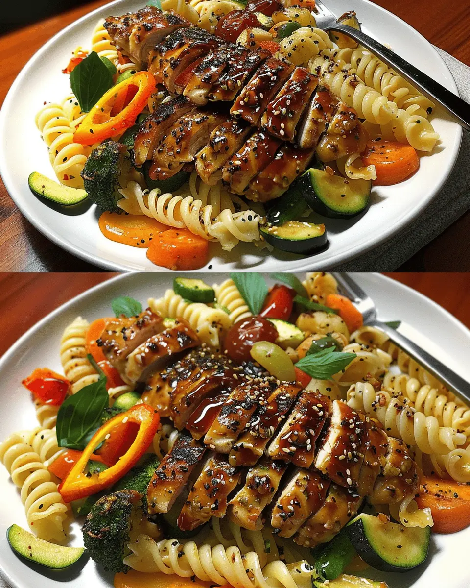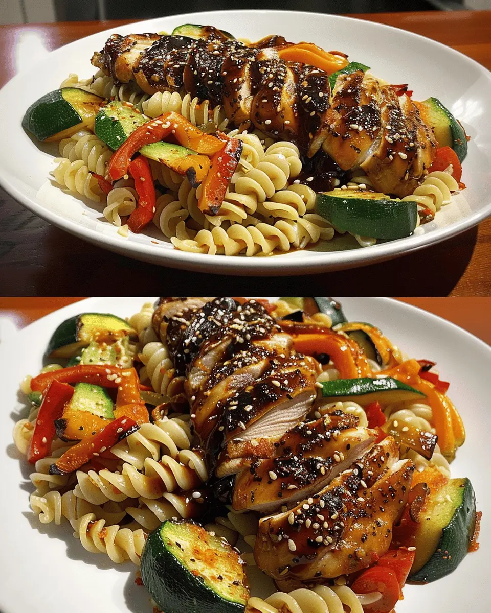 Teriyaki Chicken Delight with Roasted Vegetable Pasta Bliss