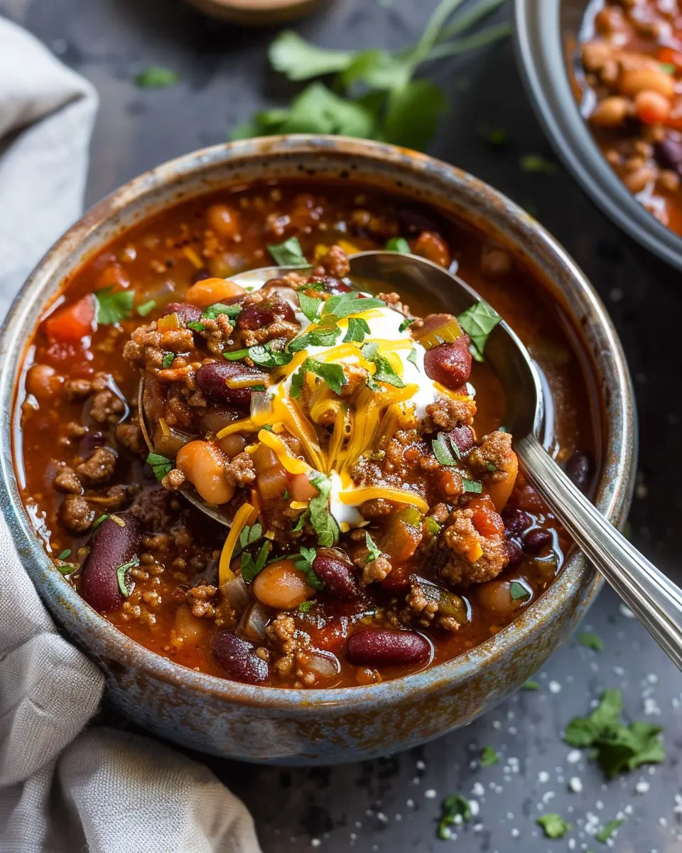 PrintThe Best Chili Recipe: Comforting and Hearty with Turkey Bacon
