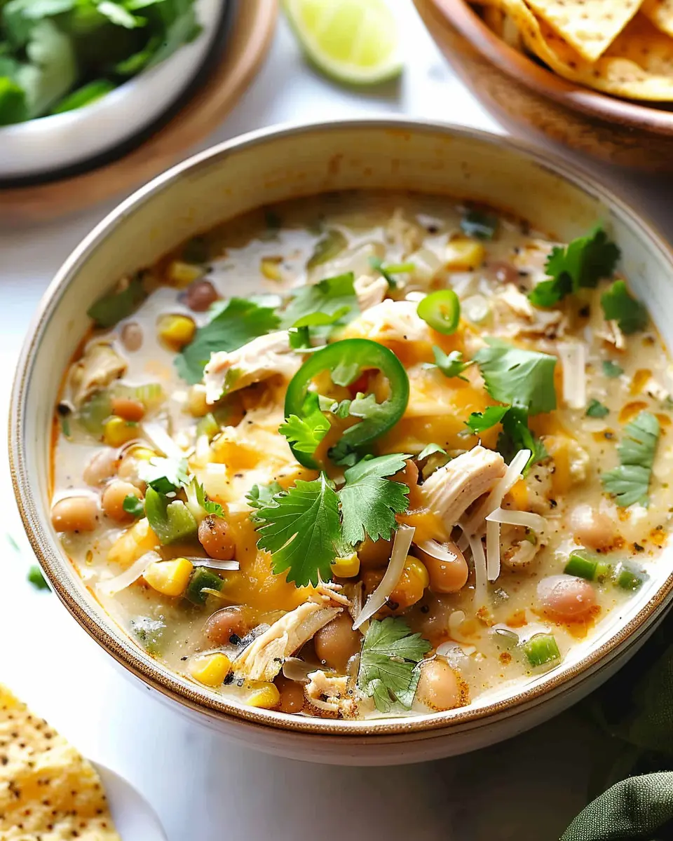 Wrapping up, this white chicken chili recipe is more than just a winter warmer; it’s a comforting dish that brings people together. The blend of creamy textures and robust flavors elevates this meal to a weeknight favorite. Plus, it’s versatile! You can easily tweak it by adding your preferred toppings like fresh cilantro or avocado.
