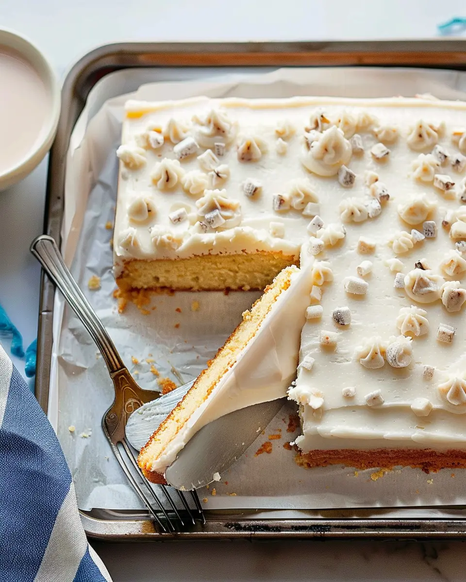 Simplicity Meets Delight: The beauty of a White Texas Sheet Cake lies in its straightforward recipe. With minimal ingredients—most of which you probably already have on hand—it only takes about 30 minutes to prep for the oven. That means less time in the kitchen and more time enjoying life!